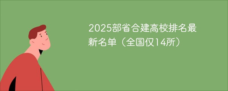 2025部省合建高校排名前十名:南昌大学(全国排名48)、郑州大学(全国排名59)、河北大学(全国排名77)、贵州大学(全国排名81)、山西大学和云南大学(全国排名90)、广西大学和内蒙古大学(全国排名120)、海南大学(全国排名154)、宁夏大学(全国排名173)。